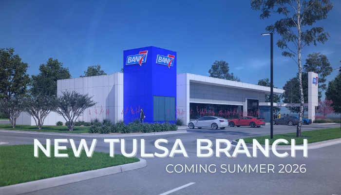 Bank7 is excited to announce its plans to open a new full-service banking facility in Tulsa, slated to open in Summer 2026. The new facility will replace the current branch and is designed to better serve the growing needs of the Tulsa community with enhanced space, modern amenities, and convenient customer access.